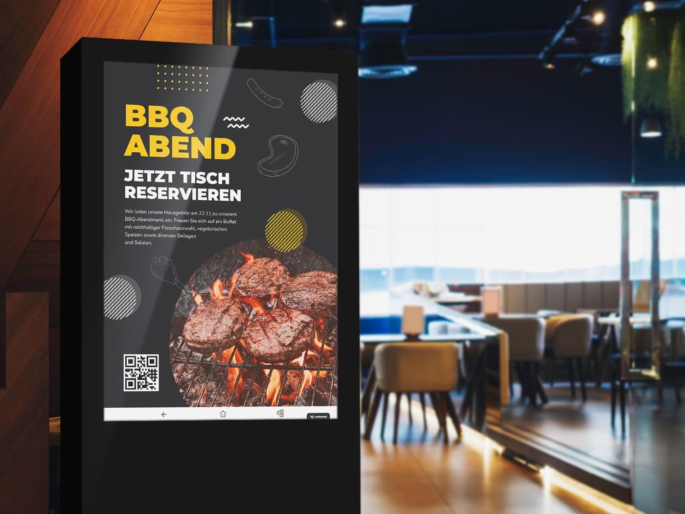 Informationen smart verbreiten – nutze die aufmerksamkeitsstarke Wirkung von Bildschirmen in deinem Betrieb. Präsentiere auf geschickt platzierten Monitoren Informationen wie Angebote, Events, Menüs, Wetterprognosen uvm.